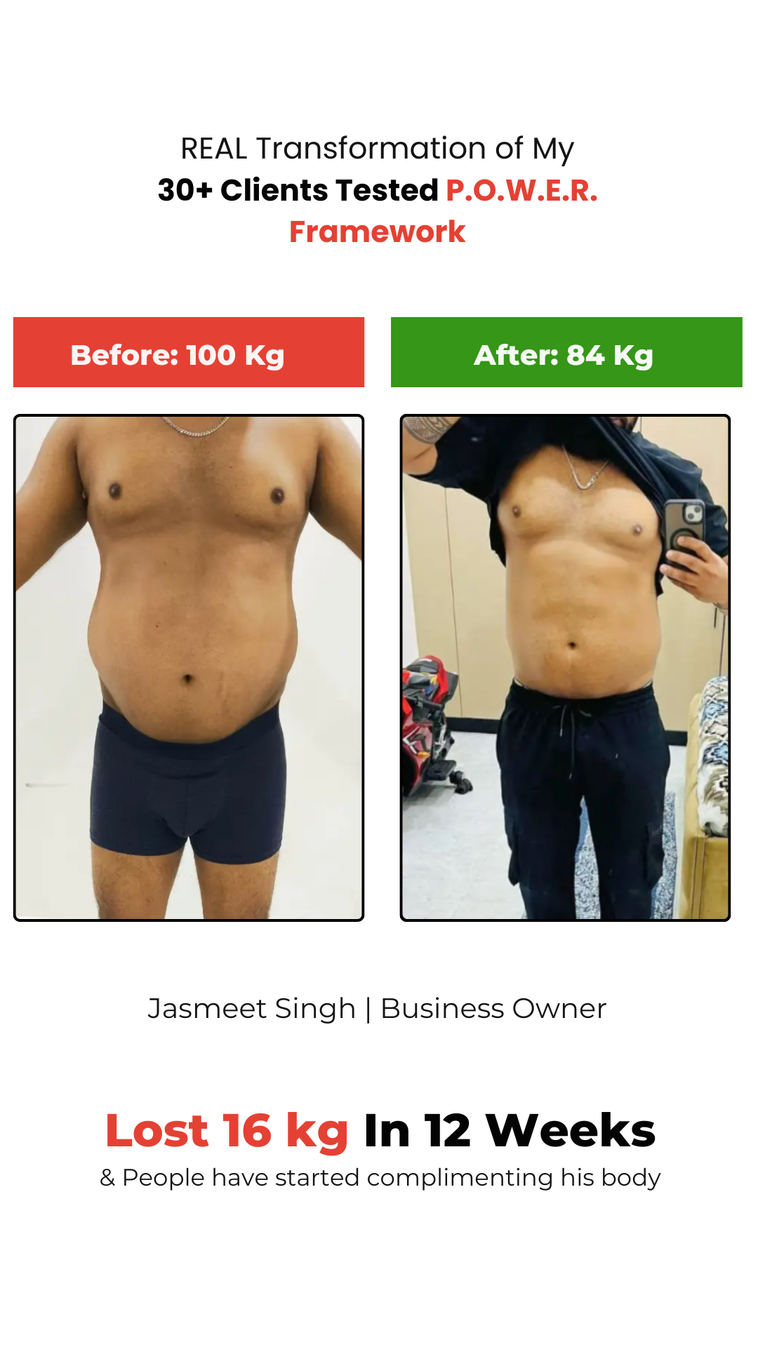 I've helped numerous Overweight Dads transform their bodies and reclaim their confidence using my proven P.O.W.E.R. Framework.